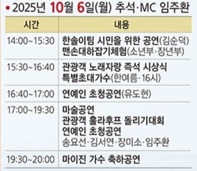 - 비나 강풍 등 기상 상황에 따라 일부 프로그램이 변경될 수 있으니 사전에 공식 안내를 확인하세요.